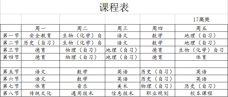 高中班课程表公示